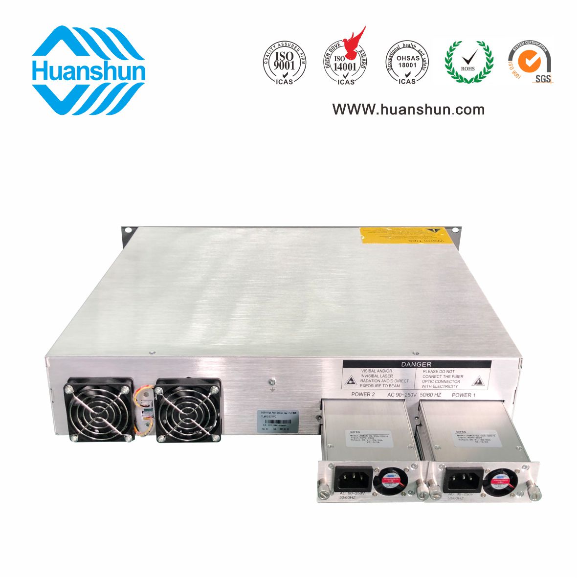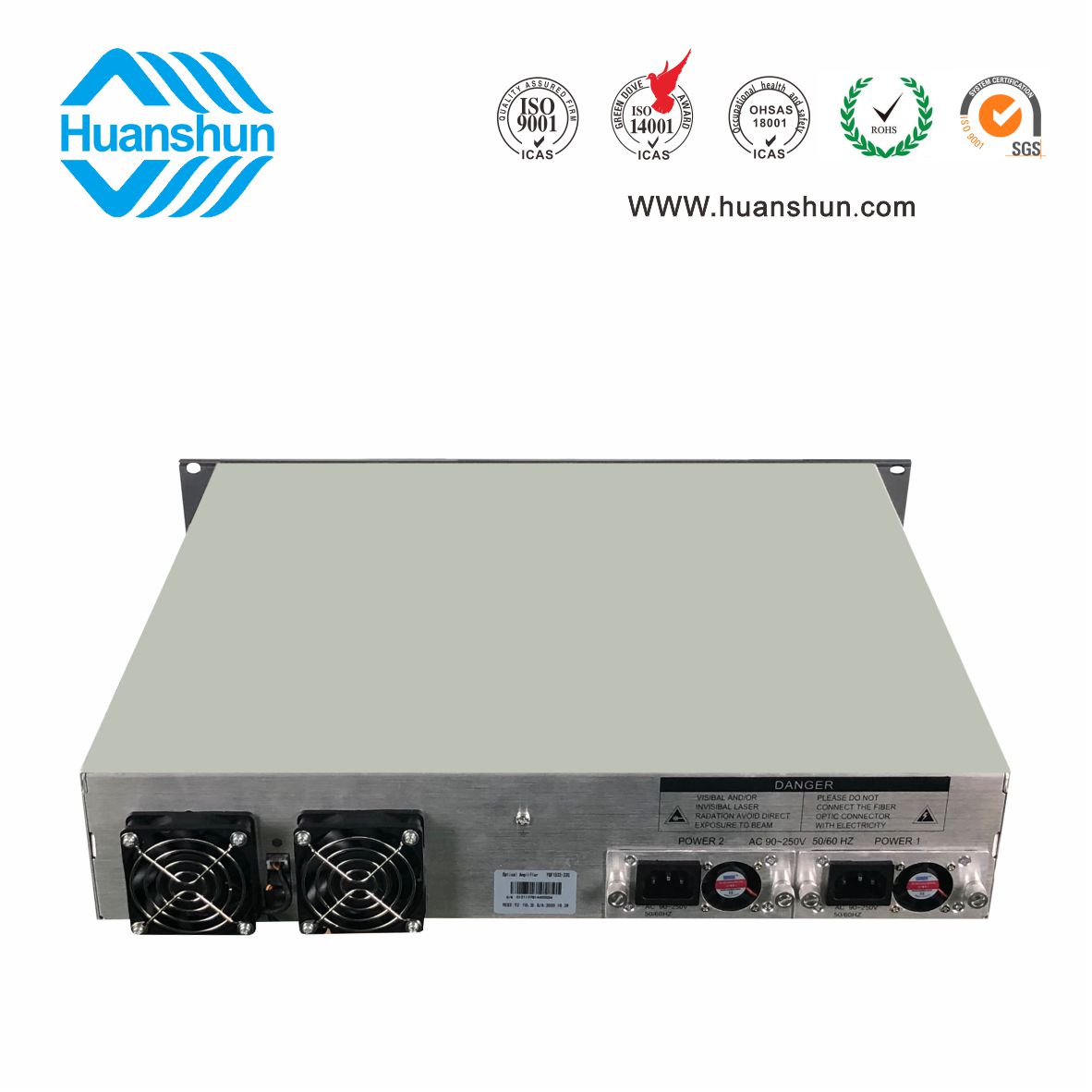 大功率光纖放大器EYDFA | YGF1532-16C | 19 " 2U/3U標(biāo)準(zhǔn)機(jī)箱,-5 ~ +10 d Bm輸入,32路標(biāo)稱規(guī)格(16、17、18、19、20、21、22、23dBm)放大輸出,并支持下調(diào)-2dB,安全連接模式,NF ≤ 5dB(0dBm時);內(nèi)置FWDM合波器,插播損耗 ≤ 1dB;雙模塊熱插撥電源,AC90 ~ 255V或DC-48V供電,RJ45標(biāo)準(zhǔn)網(wǎng)管(支持SNMP、WEB) |