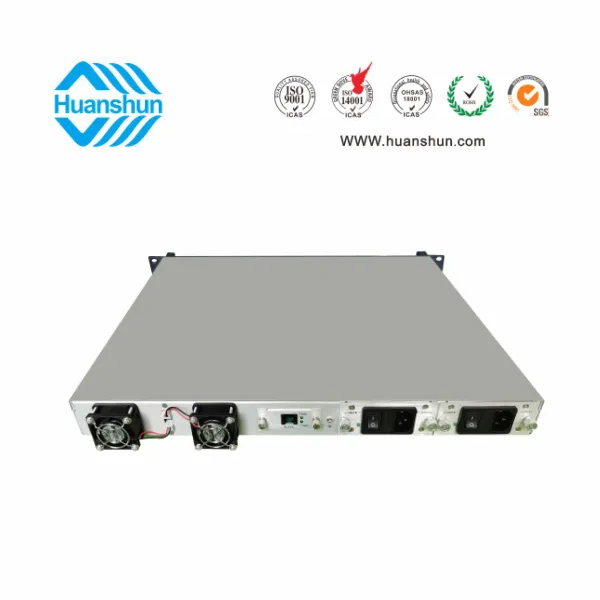 大功率光纖放大器EYDFA | YGF1508-16C | 19 " 1U標準機箱,-5 ~ +10 d Bm輸入,8路標稱規(guī)格(16、17、18、19、20、21dBm)放大輸出,并支持下調-2dB,安全連接模式,NF ≤ 5dB(0dBm時);內置FWDM合波器,插播損耗 ≤ 1dB;雙模塊熱插撥電源,AC90 ~ 255V或DC-48V供電,RJ45標準網管(支持SNMP、WEB) |