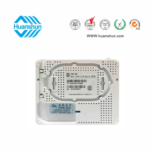 EPON ONU | HSO10 04 | EPON 4FE ONU ,PON端口接入,并帶盤纖裝置;外置 90~255V-12V 1A 電源線 |