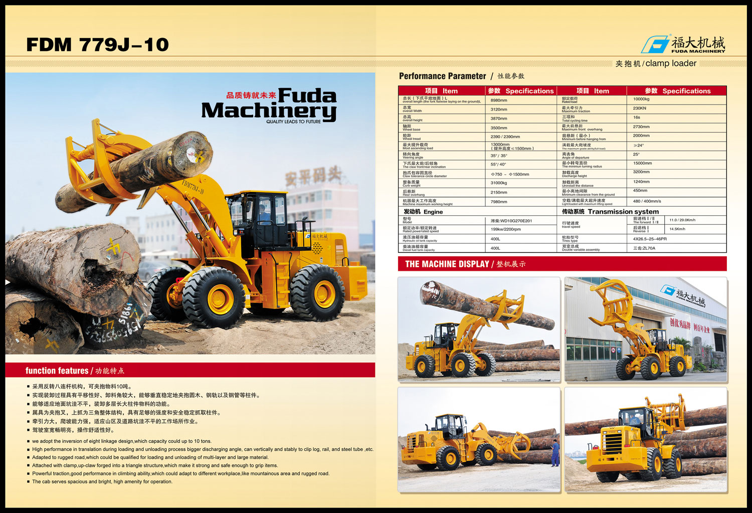 10噸木材原木夾抱機(jī)(圓木夾抱機(jī))FDM779J-10產(chǎn)品資料